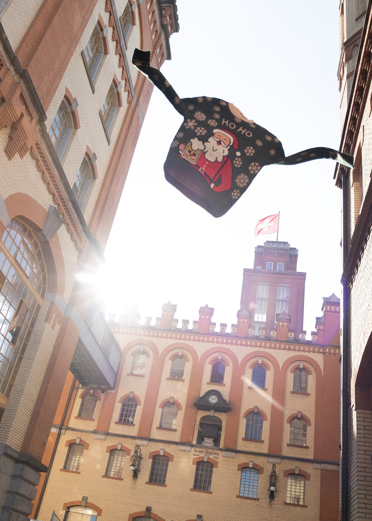 Der zweite Feldschlösschen Weihnachtspulli aus unserer limitierten Kollektion ist da! Diesmal in festlichem Grün, Beige und Rot – und verziert mit einem gut gelaunten Weihnachtsmann, der sofort für Feierlaune sorgt. Perfekt, um Weihnachtsfeste, Apéros und dunkle Winterabende aufzuhellen. Ganz nach dem  Motto: «HO HO - HOLD MY BEER».